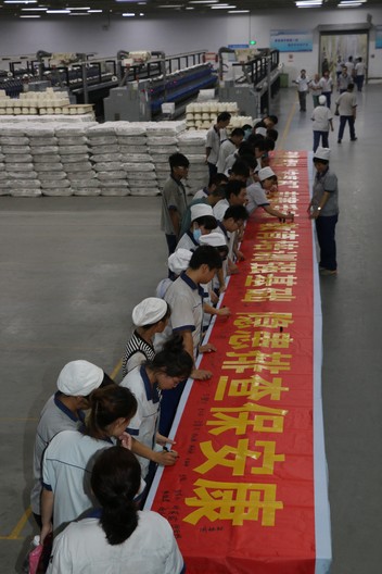 圖為恒新員工“安康杯”生產競賽簽名活動現場。
